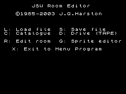 ![]() JGH/DefRoom "DefRoom" v1.24 by J.G.Harston | ![]() BBC/DefRoom "DefRoom" by J.G.Harston for BBC | ![]() JSEdit.zip "Jet Set Editor" by Paul Rhodes | ![]() JSWCK.zip "Jet Set Willy Construction Kit" v1.0 by Andrew Broad for Spectrum 128k | ![]() JSWED104.zip "Jet Set Willy Editor v1.04 05-Aug-1998" by John Elliot for DOS |